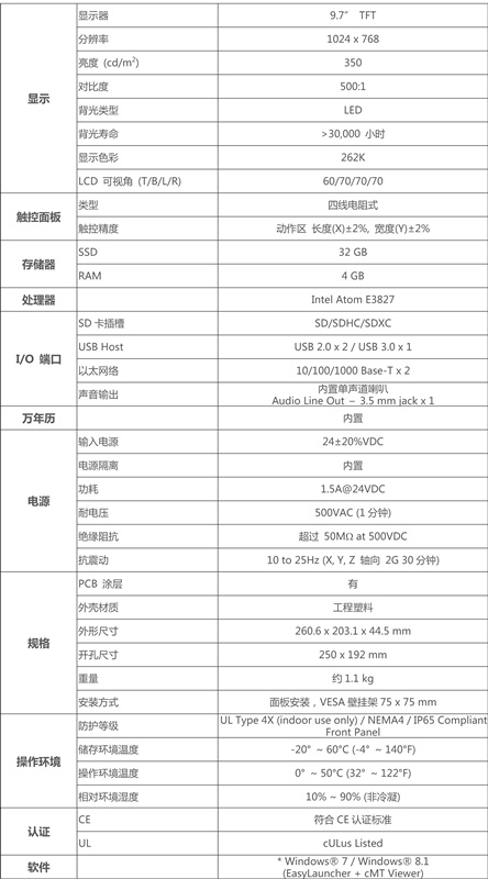 • 9.7" 1024 x 768 TFT LCD
