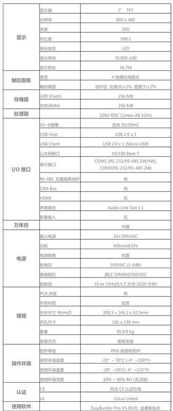 eMT3070B臺灣威綸觸摸屏代理產品特點